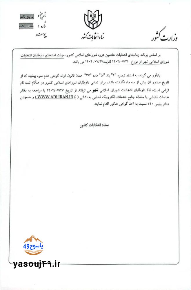 به گزارش یاسوج۴۹، آغاز ثبت نام شوراهای اسلامی شهر وروستا در حوزه انتخابیه شهرستان دنا اعلام شد.