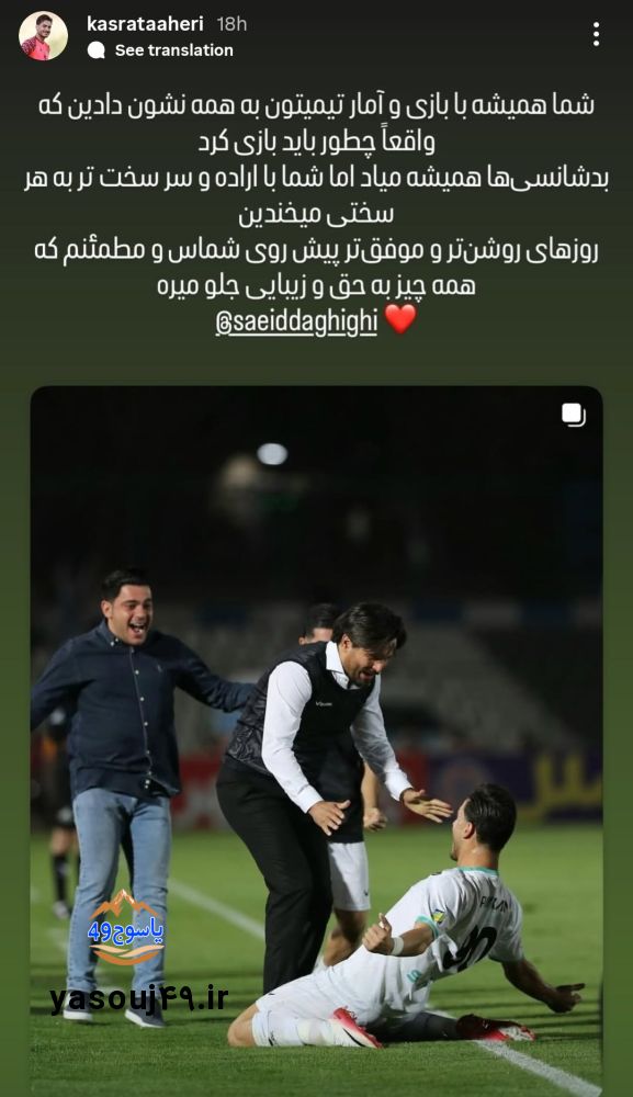 حالا در شرایطی که جای خالی کسری طاهری در ترکیب پیکان طی چند بازی اخیر به چشم آمده و مهاجمان این تیم گلهای زیادی را هدر دادند، این مهاجم 19 ساله با انتشار دو استوری در صفحه شخصی اش به اعضای تیم خود روحیه داده است.
