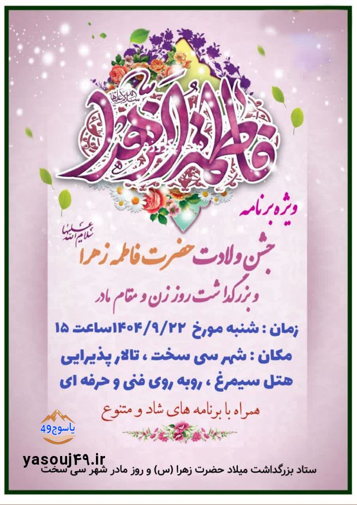 به گزارش یاسوج ۴۹، به مناسبت میلاد حضرت زهرا سلام الله علیها جشن باشکوهی روز شنبه ۲۲ آذر ساعت ۱۵