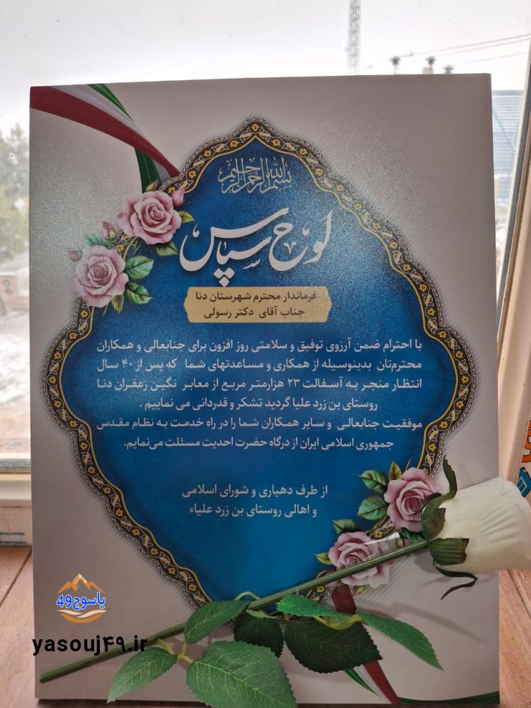 به گزارش یاسوج۴۹،به پاس اقدامات اثرگذار و رویکرد مردممحور فرماندار شهرستان دنا، گروهی از معتمدین، رجال ارزشمند، فرهنگیان، جوانان، اعضای شورای اسلامی و دهیار روستای بنزرد علیا با همراهی جمعی از اهالی، از مهندس رسولی، فرماندار دنا تقدیر و تشکر بهعمل آوردند.