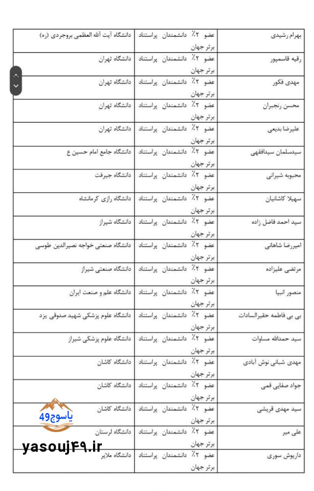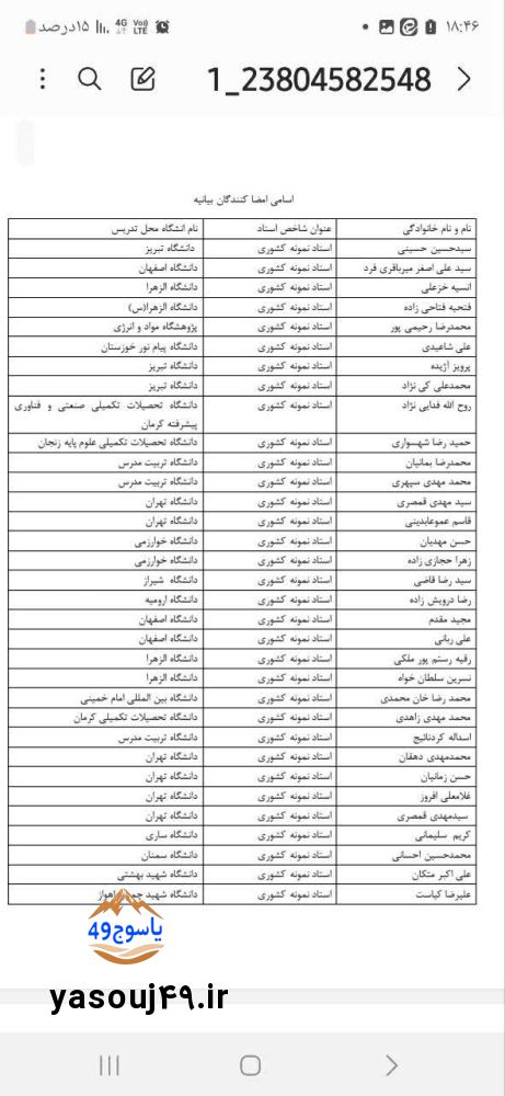 به گزارش یاسوج ۴۹ همزمان با دهه فجر انقلاب اسلامی و همچنین در پی حوادث اخیر اغتشاشات و آشوبها و همچنین تهدیدهای رئیس جمهور آمریکا تعداد زیادی از اساتید و برجستگان علمی کشور شامل ۶۸ استاد نمونه کشوری، ۴۰ دانشمند ۱ درصد اول جهانی، ۴۹ دانشمند ۲ درصد جهانی، ۱۰ دانشمند پر استناد علوم انسانی، ۳۵۴ استاد تمام و ۳۱۵ دانشیار برجسته کشور بیانیهای در همین راستا صادر کردند در این بیانیه آمده است