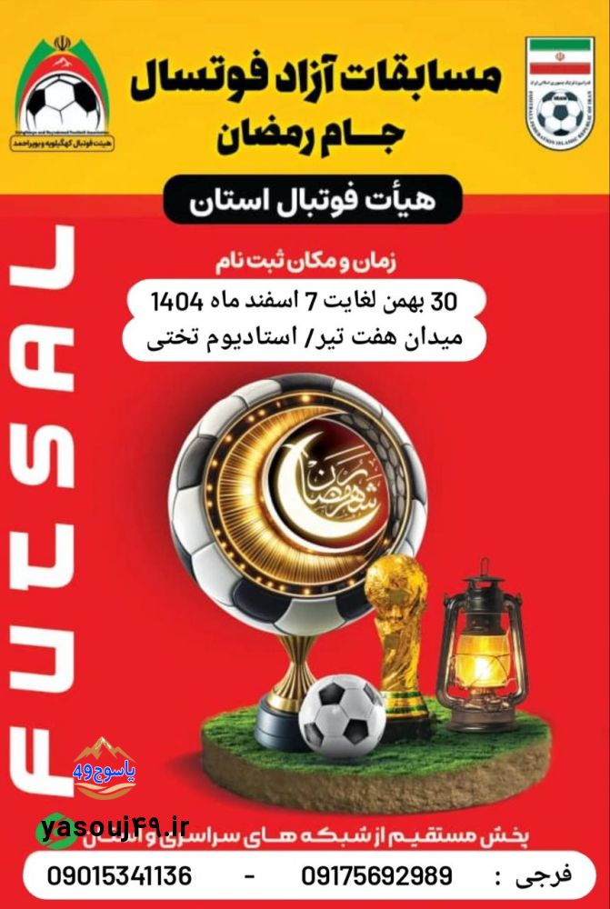 به گزارش یاسوج ۴۹_به همت هیئت فوتبال استان کهگیلویه و بویراحمد و کمیته فوتسال این هیئت مسابقات بزرگ آزاد فوتسال جام رمضان در یاسوج مرکز استان برگزار میشود.